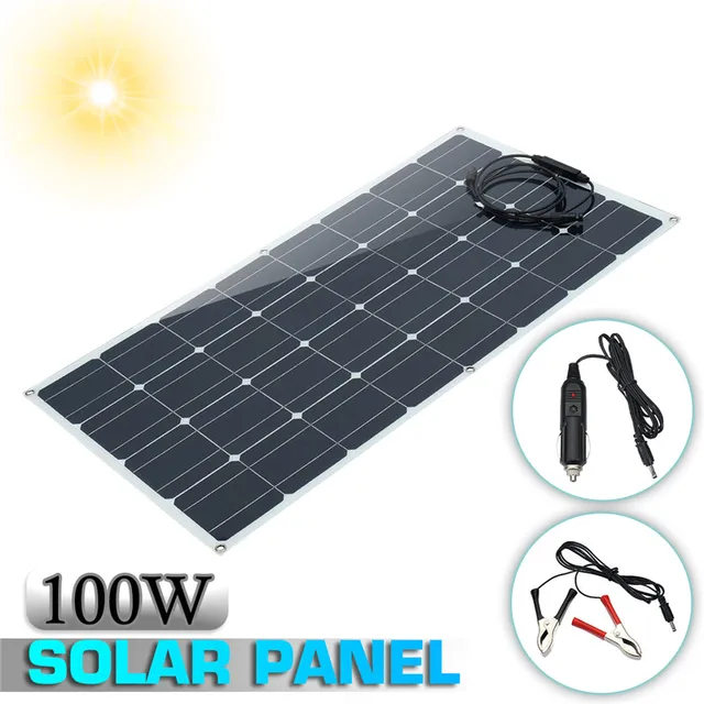 100W 12V Solar Panel with Cigarette Lighter MC4 Connector Charging For RV/ Boat