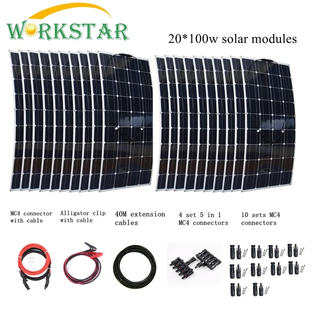 20pcs Mono 100w Solar Panels Modules with MC4 Connectors and Cables House Use Off Grid Solar 2000W Power System Factory Price